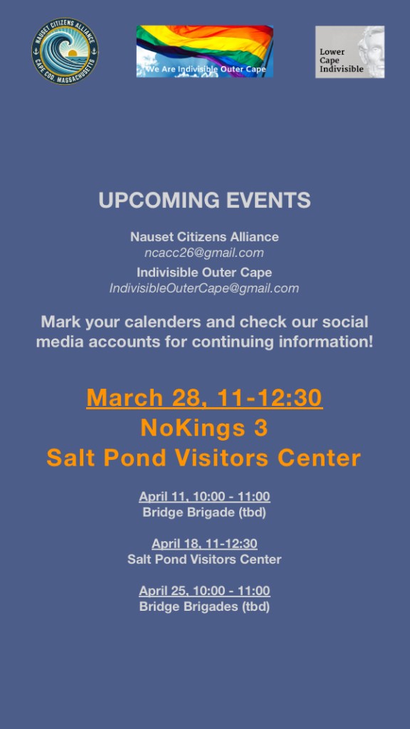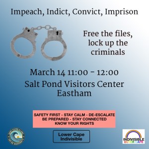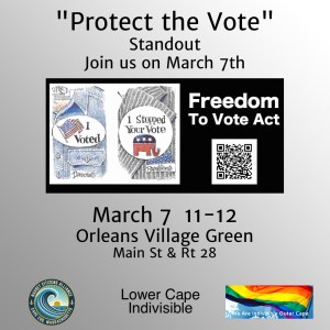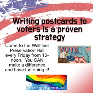 Indivisible Outer Cape is a mighty group of good people from Provincetown, Truro, Wellfleet, Eastham and beyond. We empower activists with a variety of pro-democracy actions and a welcoming community.