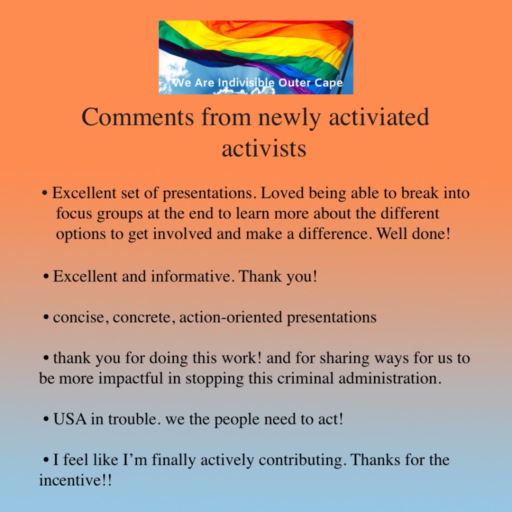 For updates from Indivisible Massachusetts Coalition (statewide group)
